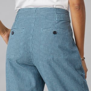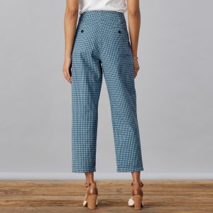 Feel at ease in our gingham. paperbag waist cropped pants. a stylish update to a Sundance favorite with front and back welt pockets. tabs at the front and pleating detail. Cotton/linen. Machine wash. Imported. Exclusive. Sizes 2-16. 27 inseam.